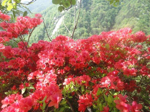 它的花不大,却开得热烈而坦荡。它的个不高,却朴素而明艳。一簇簇、一丛丛,在向阳的坡地,在陡峭的悬崖,静俏绽放。其他的树木、杂草还是枯黄色,唯有映山红,悄然开放,挺立山间,把生机与希望,滑嫩的展示在人间。