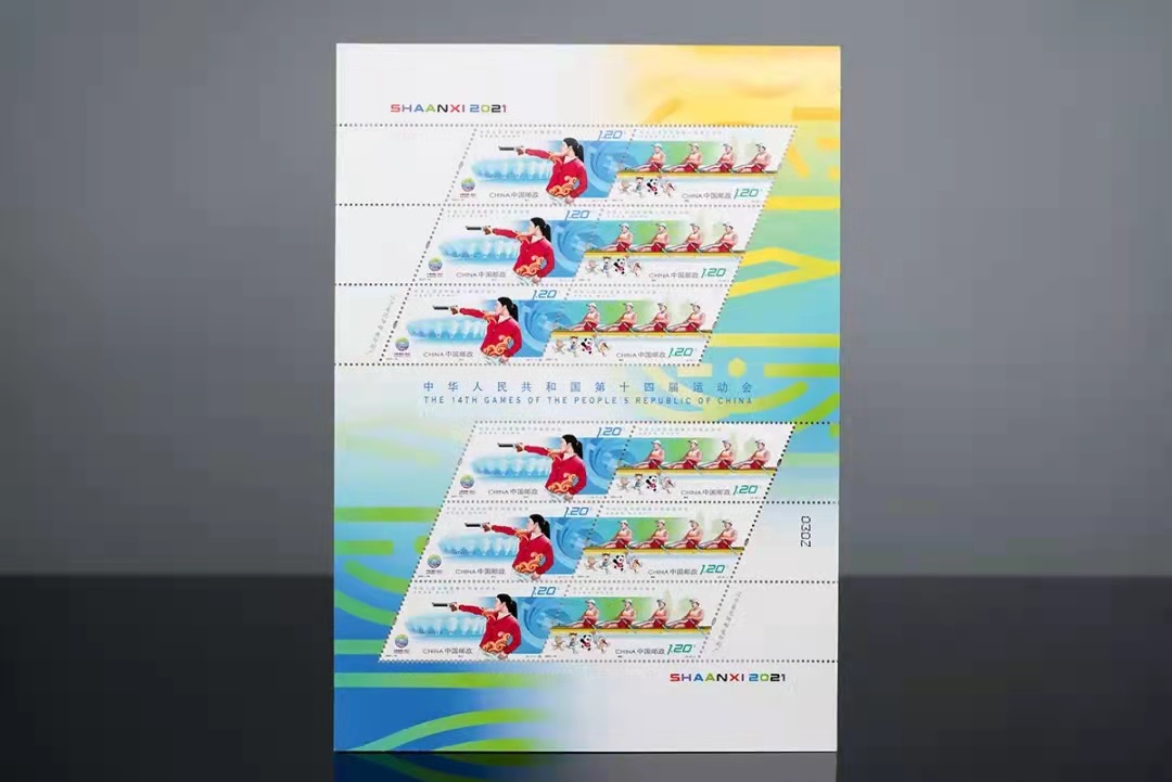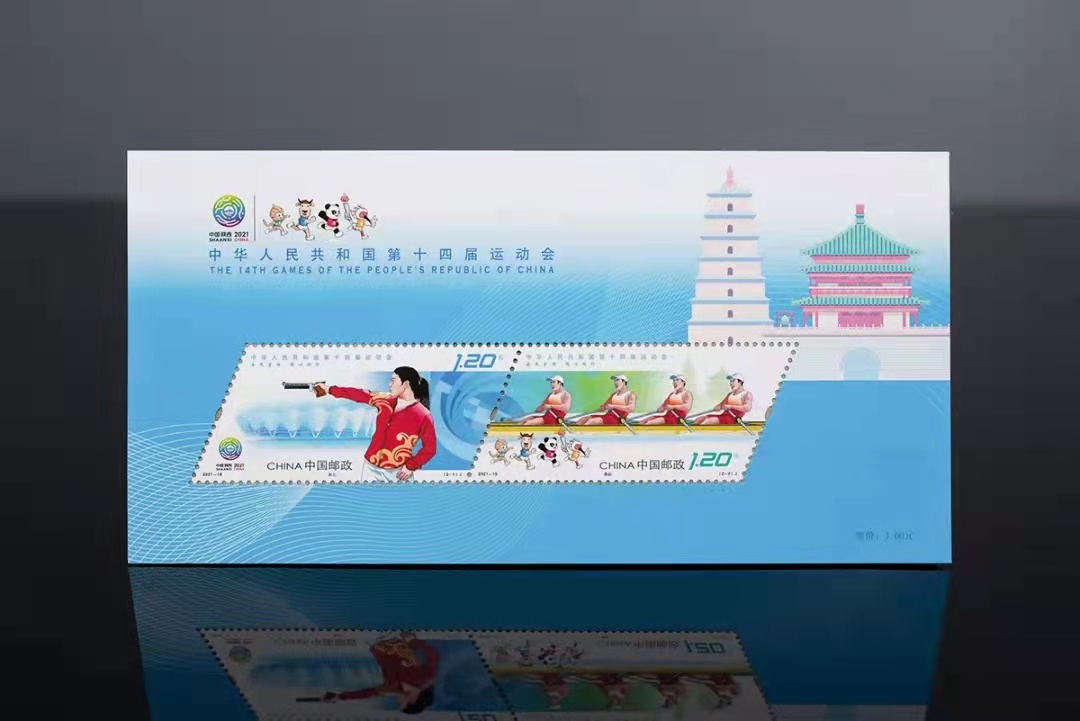 “全民全运,同心同行”。第十四届全国运动会定于今年9月15日至9月27日在陕西省举行。在本届运动会开幕当天,中国邮政特发行纪念邮票一套,由著名画家和设计家、天津美术学院副院长郭振山教授主持设计完成。