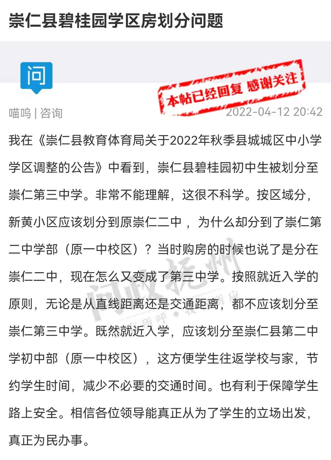《崇仁县关于2022年秋季县城城区中小学学区调整的公告》经过广泛征求相关学校和社会各界的意见建议,并经县政府研究同意由崇仁县政府网站正式向全社会进行公布。从招生学校办学规模、师资力量、就近入学等多方面考虑,将崇仁县碧桂园小区划分到崇仁县道南学校初中部(原崇仁二中校区)就读是合理的。