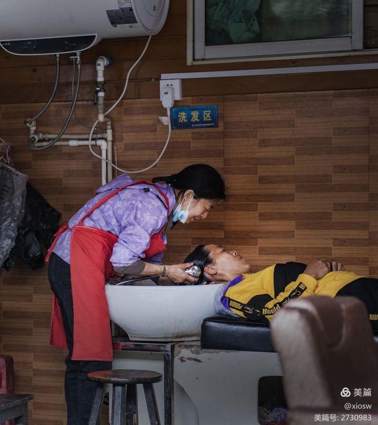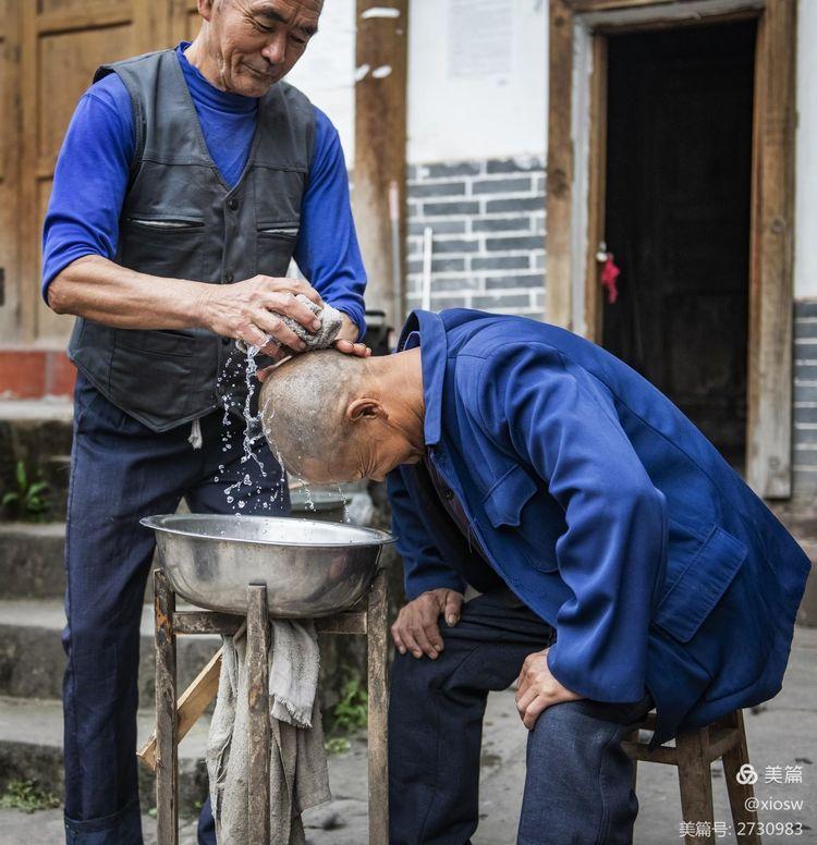 像这样简陋的理发模式现在已经很少见了,彰显尧坝古镇手艺的传承。