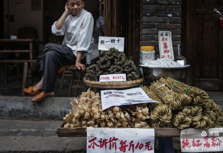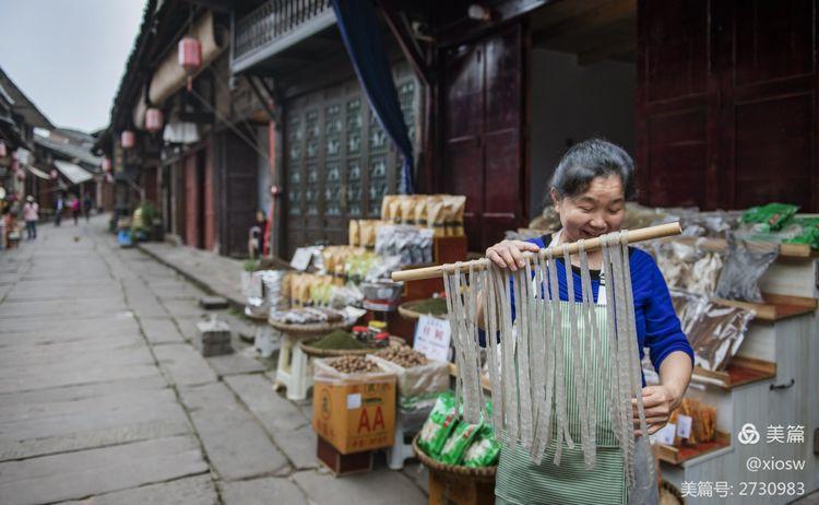 尧坝古镇的烟火气更表现在它的商业上,同样是热闹繁华,但尧坝的商业买卖更多的是当地的土产,是延续了一代又一代的商品,是主要服务当地人的烟火气。