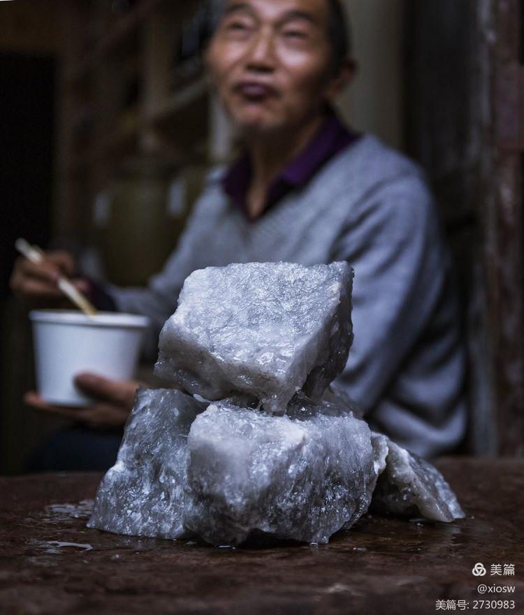 “卤水点豆腐,一物降一物”,正是由于古街上豆花盛行,其它地方很少见到的“胆水”(即卤水)也摆上了台面。它是晒盐或煮盐时,因饱和度大于氯化钠(盐)而析出的一种黑色浓汁,是做豆腐的重要原料,固化后就是这个样子。