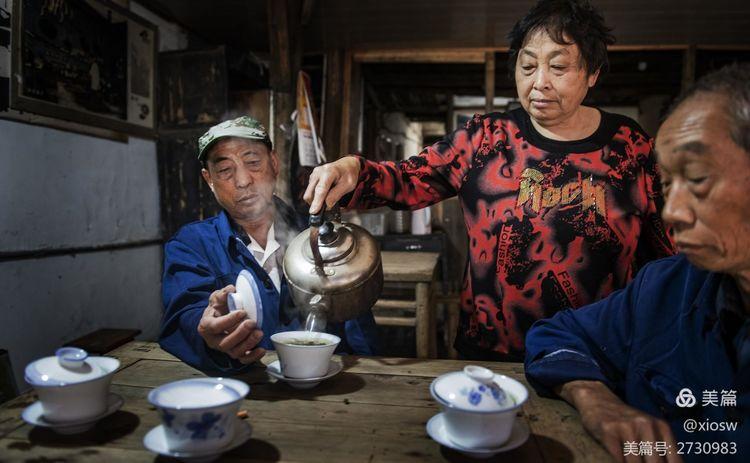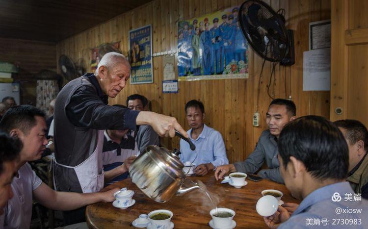 在尧坝茶馆,茶客对茶叶的好坏似乎并不在意,他们在乎的是挪开碗盖瞬间飘出的茶香,满足的是围桌而坐、摆摆龙门阵的氛围。