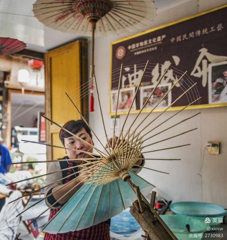 走在尧坝古街,映入眼帘的是一把把纯手工制作的油纸伞。油纸伞的传承距今已有千年的历史,它曾是人们遮风挡雨的主要工具,现被列入国家级非物质文化遗产。