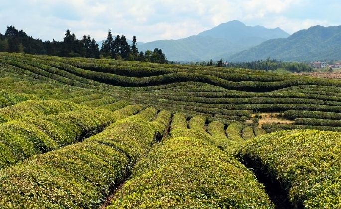 茶园遍布的几座丘陵,高低起伏,蔚为壮观