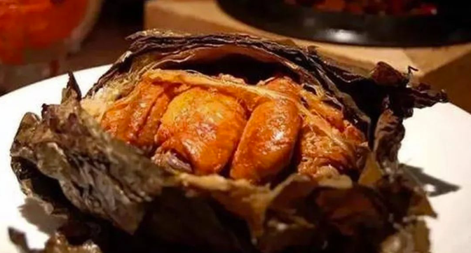 荷包胙是江西赣州南康和大余等地的非遗客家美食,具有深厚的文化底蕴和历史传承。这道菜以荷叶包裹猪肉、米粉等食材,经过精心烹制而成,色泽金黄,香气四溢。荷包胙口感鲜美,肥而不腻,香能饱肚,深受当地人喜爱。其制作讲究色、香、味、形俱佳,是赣州小吃文化中的珍品。