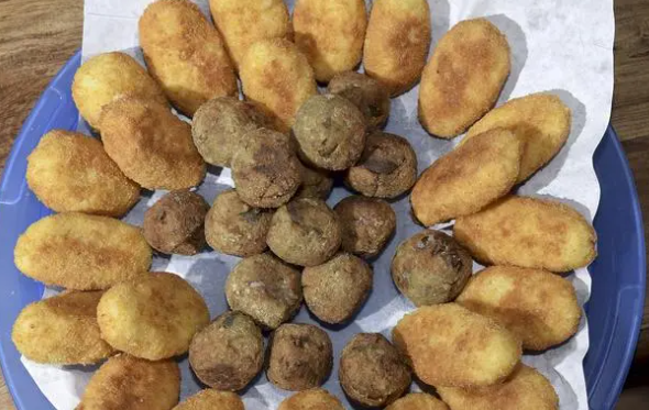 番薯丸子是萍乡的特产小吃,用面粉和红薯制作而成。制作番薯丸子要先将红薯蒸熟捣成泥,然后加入面粉和清水和匀,搓成直径2-3cm的丸子,然后将丸子放入油锅内,炸到变成金黄色,捞起即可食用,可以搭配水果一起吃,还可以沾炼乳或番茄酱吃。番薯丸子外皮金黄,外酥里嫩,咬一口香甜,口感软糯不粘牙,是不少萍乡人家乡的味道。