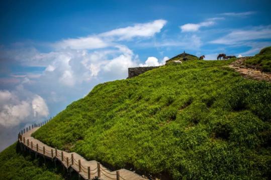- 高山草甸:武功山的高山草甸是其最显著的特征之一,尤其是在海拔1600多米的高山之巅,10万亩的草甸绵绵不断,春夏绿油油,秋冬金黄,被誉为“天上草原、人间仙境”。