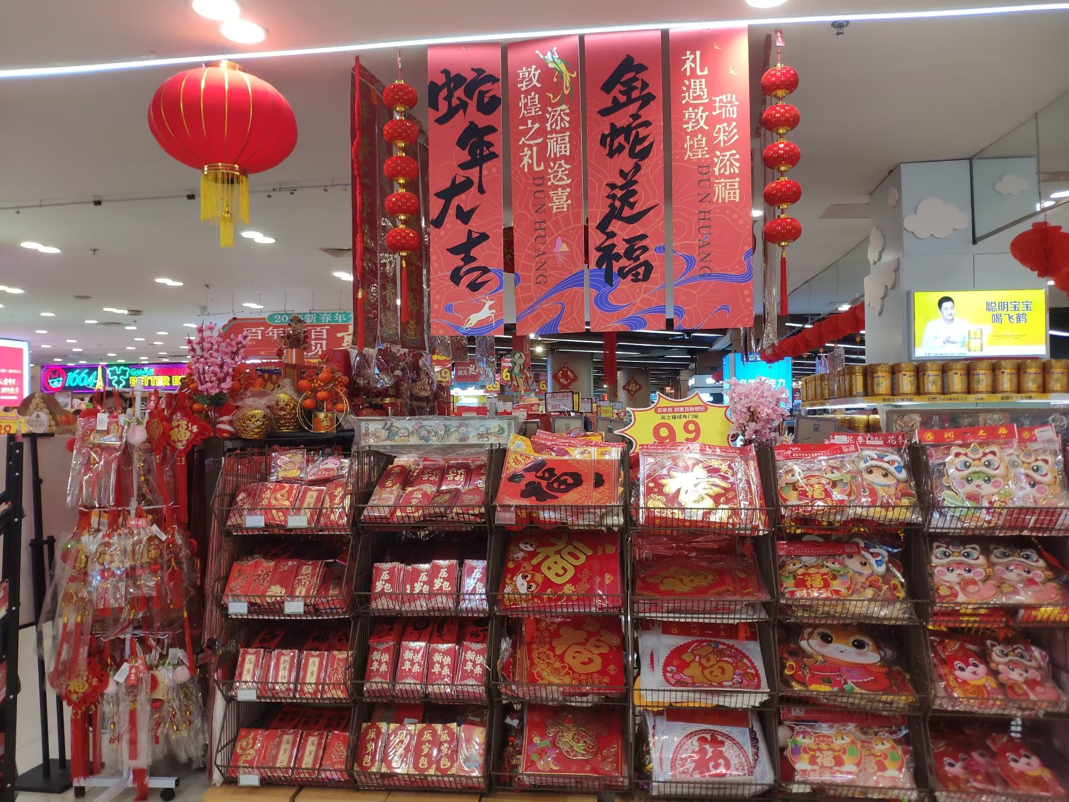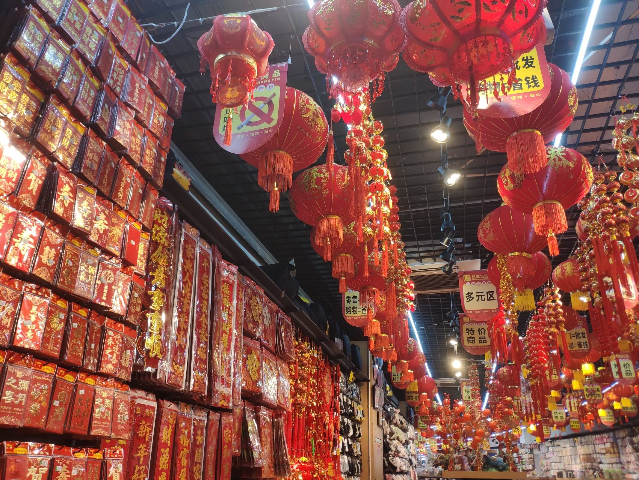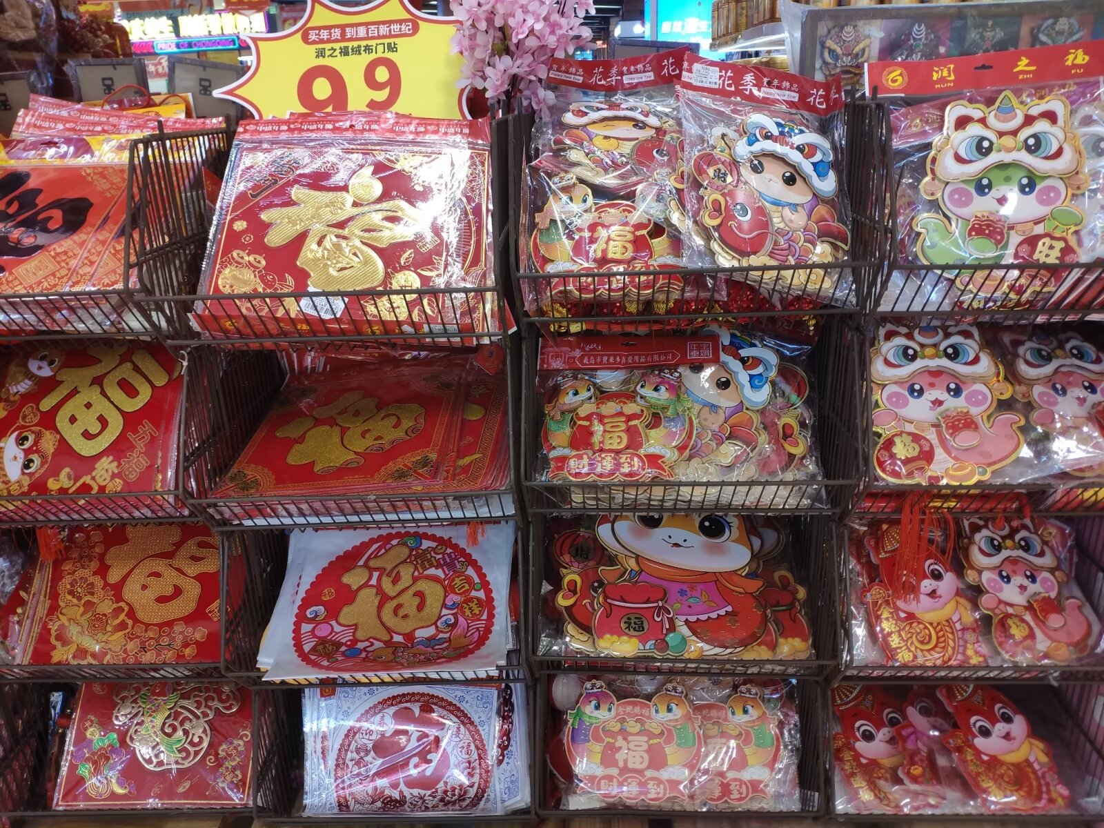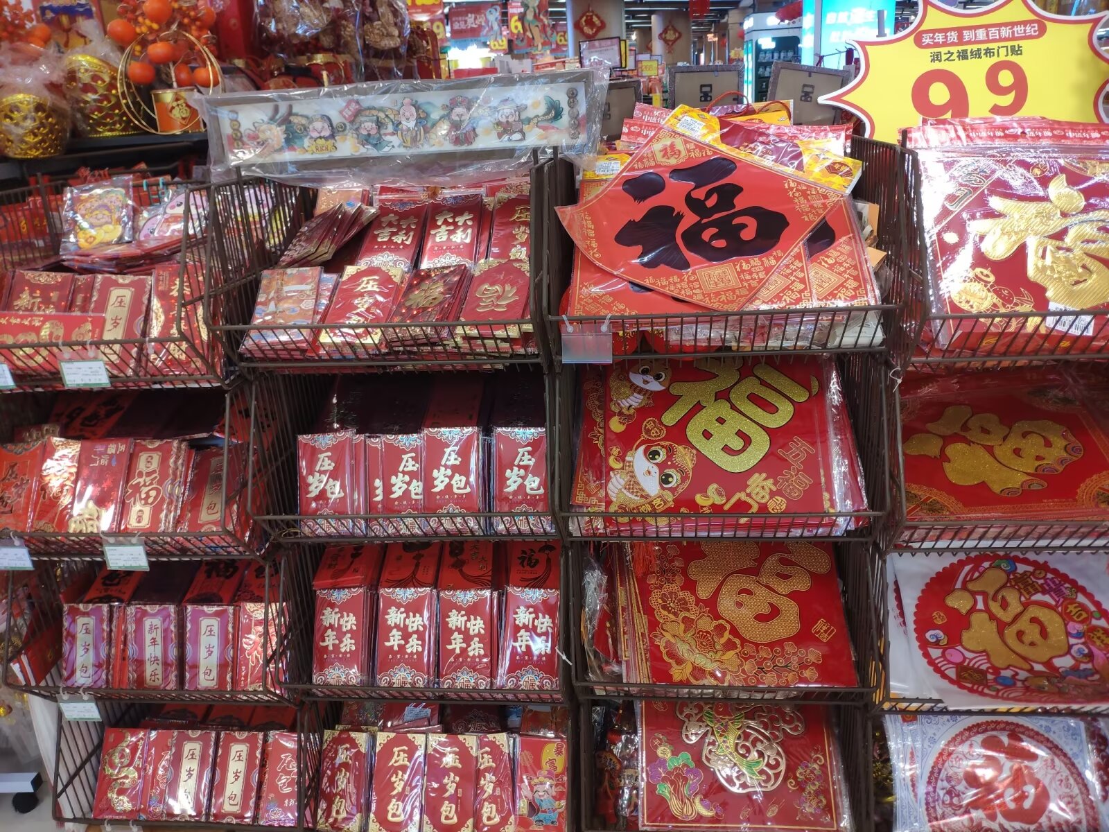 走进位于重庆市九龙坡区杨家坪的一家大型超市,红红火火的气氛扑面而来,各式各样的对联、“福”字、红彤彤的灯笼和贴画让人眼花缭乱,消费者们纷纷选购心仪的饰品为家中增添喜气。