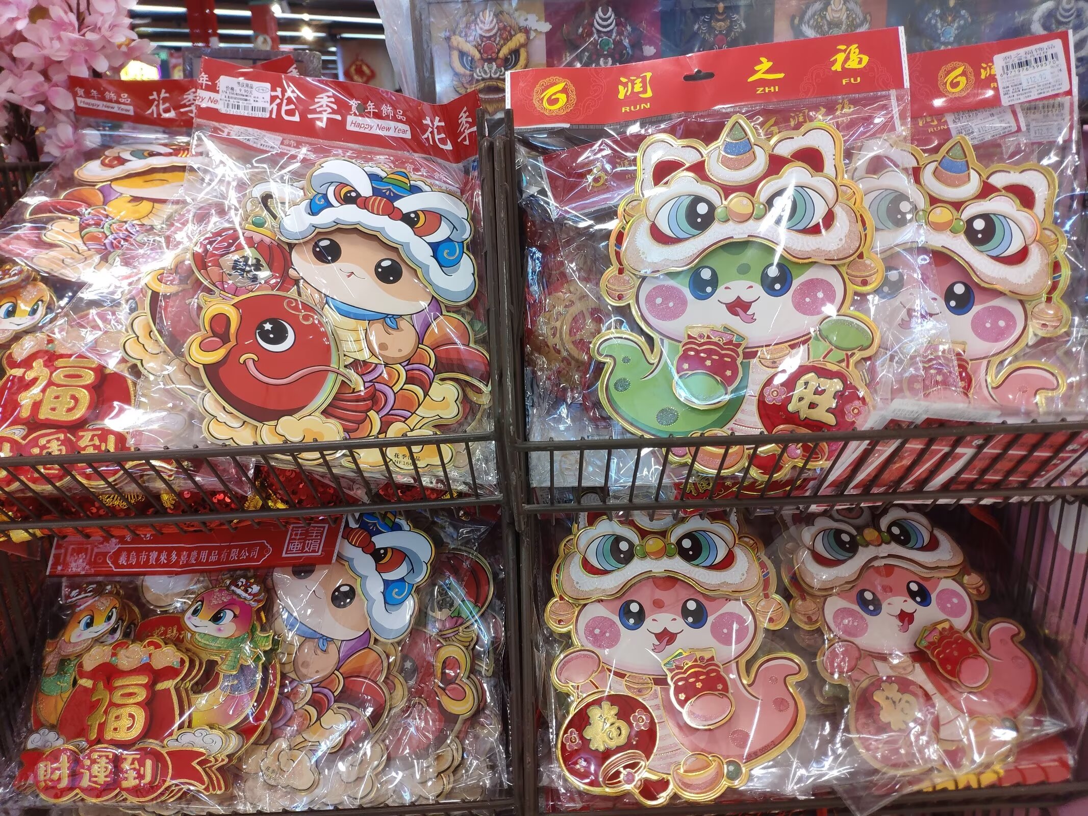 一些含有“蛇”元素的商品纷纷占据了市场“C位”,有灵蛇献瑞、金蛇报春、蛇行天下、蛇年吉祥等寓意美好的毛绒玩具、新春饰品、挂件琳琅满目,深受市民的喜爱。其中,福字、对联、灯笼、挂件等饰品最为畅销。