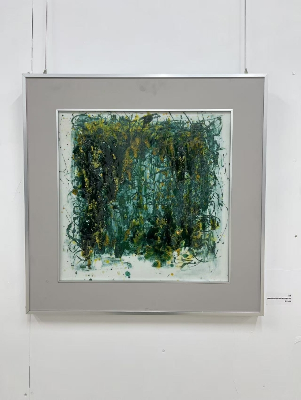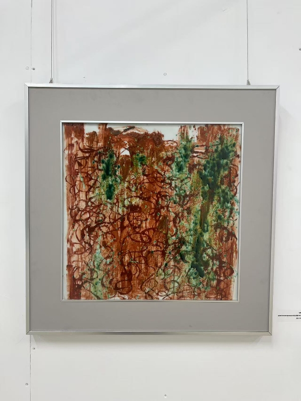 展览主题“浮华的本质”在吕元的作品中体现为对表面奢华的剥离与内在精神的探寻。他通过抽象语言消解了传统瓷板画的叙事性,转而以色彩与线条的自由组合传递情感。例如,红色的热烈与绿色的生机在《&-裂变》中形成视觉张力,暗喻自然与生命的顽强。这种从“物”到“境”的升华,使作品超越了对物质表象的描摹,直指存在的本真。
