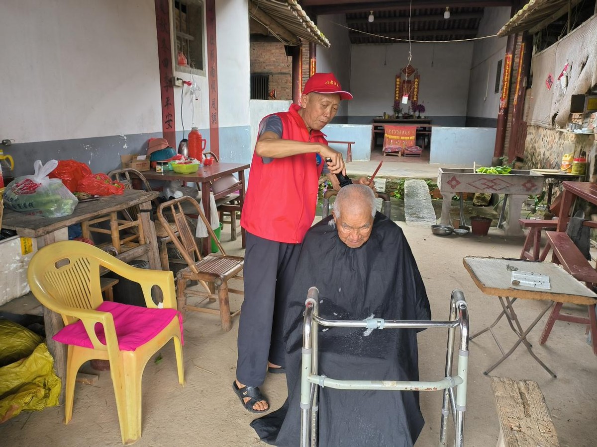 塔兜村义工为村里的老人免费义剪