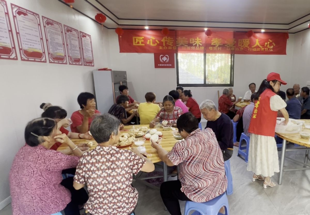 塔兜村义工和面点师为村里老人们制作特色面点