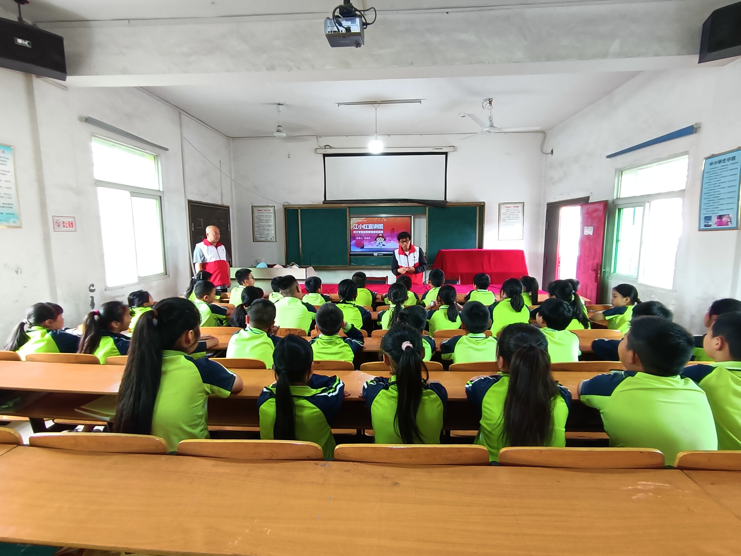 5月26日,南昌县红十字阳光志愿服务队组织志愿者分别走进向塘丁坊小学、辜坊小学、新村小学、向西小学开展防溺水宣教活动,为四所学校400余名师生普及自救互救知识。