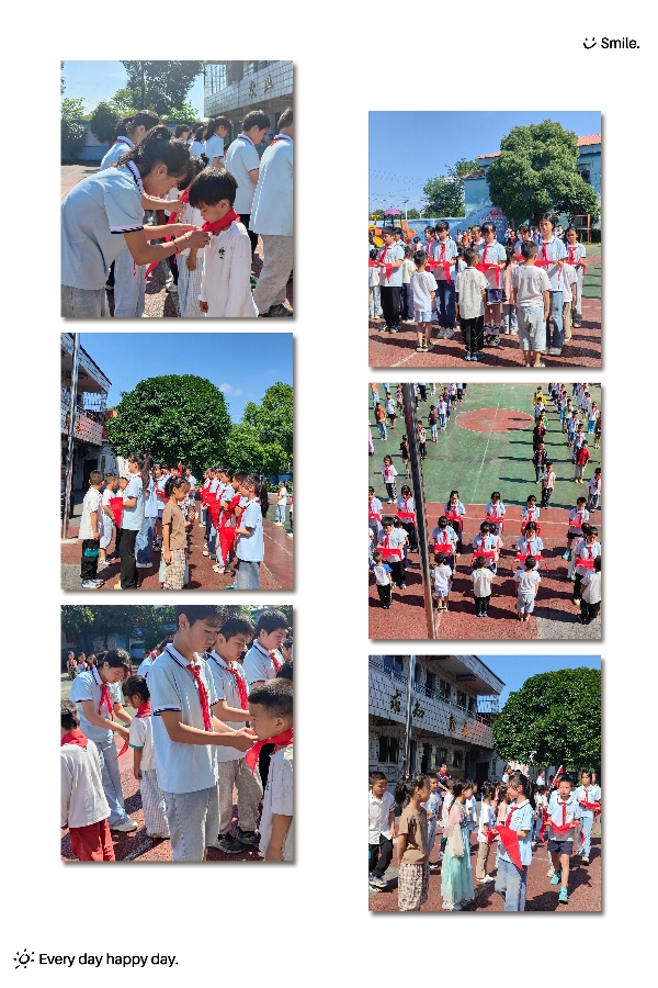 你们生长在最好的时代,未来要为国家贡献自己的力量!在家做好孩子,在校做好学生,在社会做好队员--从认真系好红领巾开始。愿你们像勇敢的喜羊羊一样智慧,像勤快的蜜蜂一样努力,让胸前的红领巾永远鲜艳!