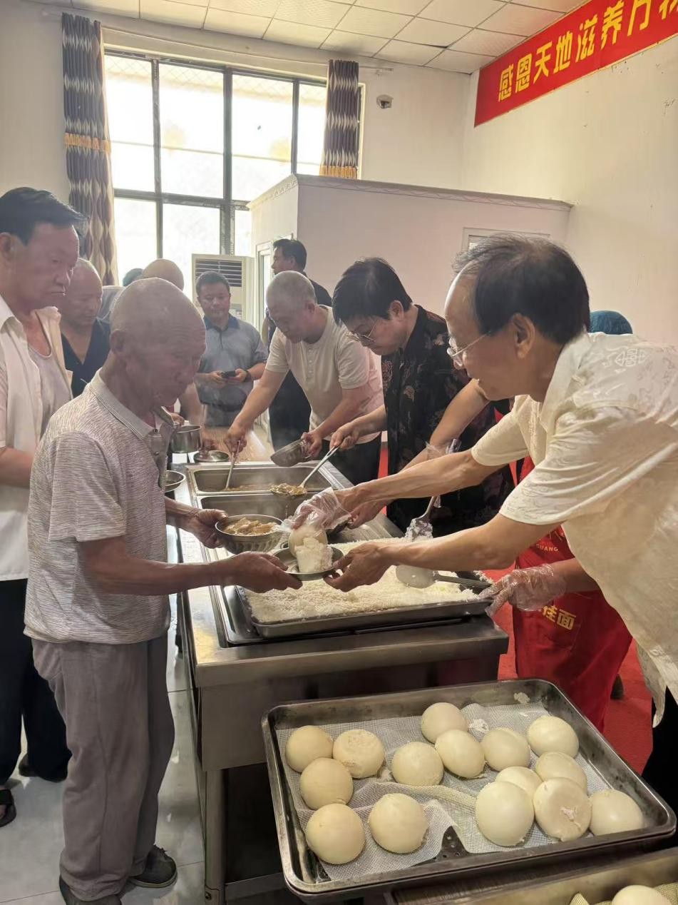 考察组为善德堂就餐老人分餐