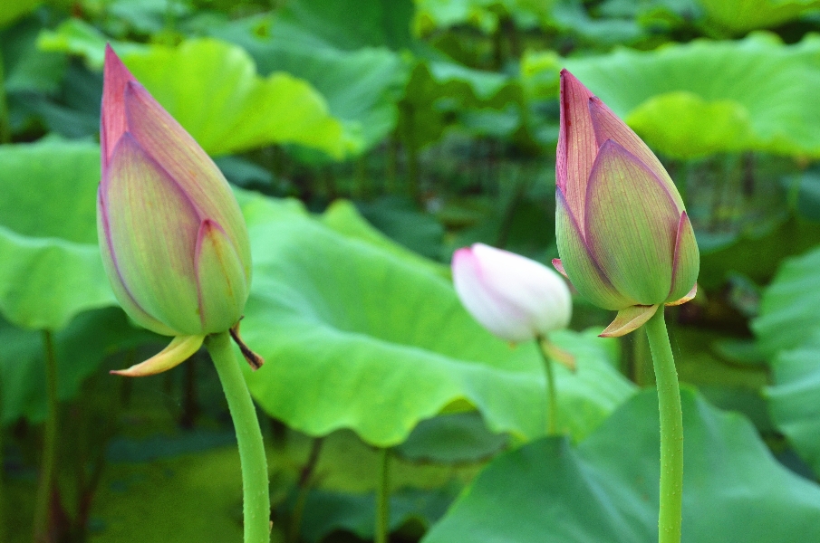 车子驶出城区,热浪依旧在挡风玻璃上肆意跳动。拐上乡道后,视野渐渐开阔,两旁的稻田连成一片,像大地铺上了绿色地毯。蝉鸣穿过车窗缝隙,此起彼伏地传入耳中,清脆悦耳,洗去了城市的喧嚣。老朱突然摇下车窗,混合着青草香的风扑面而来,带着田野的气息灌进车厢。后排打盹的小林一个激灵醒来,嘴里嘟囔着抱怨风大,嘴角却挂着笑意。导航显示距离荷塘还有两公里时,路边水沟里已经能看到零星的睡莲。紫红色的花苞像小巧的灯笼,静静浮在水面,随着水波轻轻摇曳,向我们诉说着荷塘的秘密。