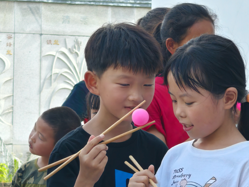 在体育活动环节,“肩夹纸” 与 “筷子夹乒乓球” 两项趣味游戏使现场变成欢乐的海洋。孩子们两两成组,默契地将纸片轻轻夹在肩头;而参与 “筷子夹乒乓球” 的小选手们,则屏息凝神地将圆滚滚的乒乓球 “护送” 到终点。活动现场,加油声和欢呼声此起彼伏。在一次次的协作与呐喊中,孩子们不仅锻炼了身体协调性,更在互帮互助中,将友谊的种子浇灌得愈发茁壮。