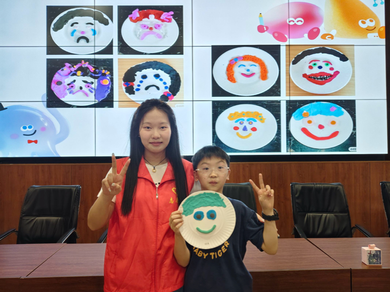 在粘土课堂的情绪脸谱创作环节,孩子们认真思考、积极动手,一个个色彩斑斓、表情各异的情绪脸谱跃然眼前。创作完成后,孩子们迫不及待地分享起脸谱背后的故事。志愿者老师顺势引导,教会孩子们用积极健康的方式表达情绪,让粘土课堂不仅成为艺术创作的天地,更化作心灵沟通的温暖港湾。
