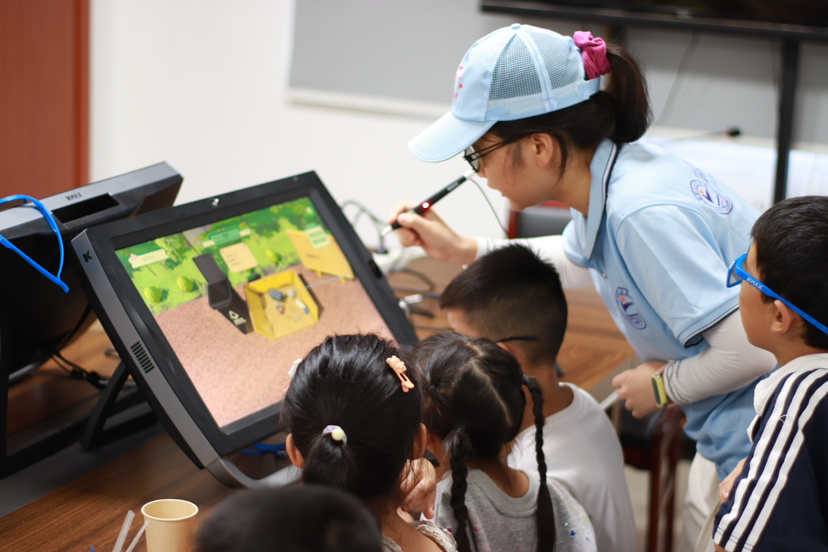 VR体验成为活动亮点,孩子们“沉浸式”走访庐山抗战遗址,“触摸”红色记忆;在汉字演变VR秀里,“茶”字“泉”字化为动态场景,以科技赋能文化传承;财商小课堂环节中,通过互动沙盘让孩子们直观地了解数字货币。团队同步开发VR课程包,为乡村教育留存数字资源。