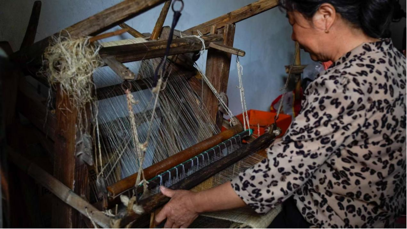 图为小源村李阿婆织作夏布。宁泽豪 摄
