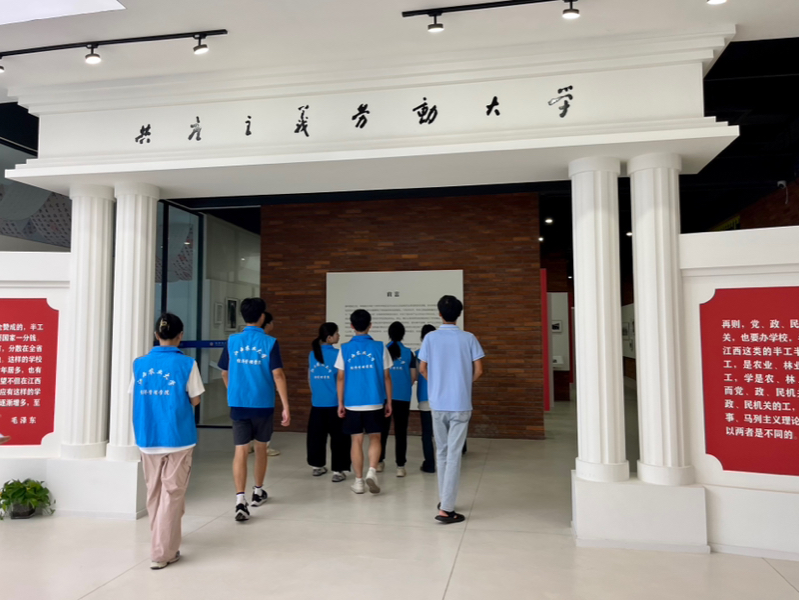 探访尾声,实践队员们齐聚博物馆门前的共产主义劳动大学复刻大门下合影留念。这场穿越时空的寻根之旅,不仅为江西农业大学百廿庆典增添了厚重的历史注脚,更让青年学子们深刻领悟:传承共大精神,绝非简单地回溯过往,而是要像当年的共大人一样,在新时代的沃土上,持续发扬其精髓,奋力耕耘属于农大人的崭新答卷。