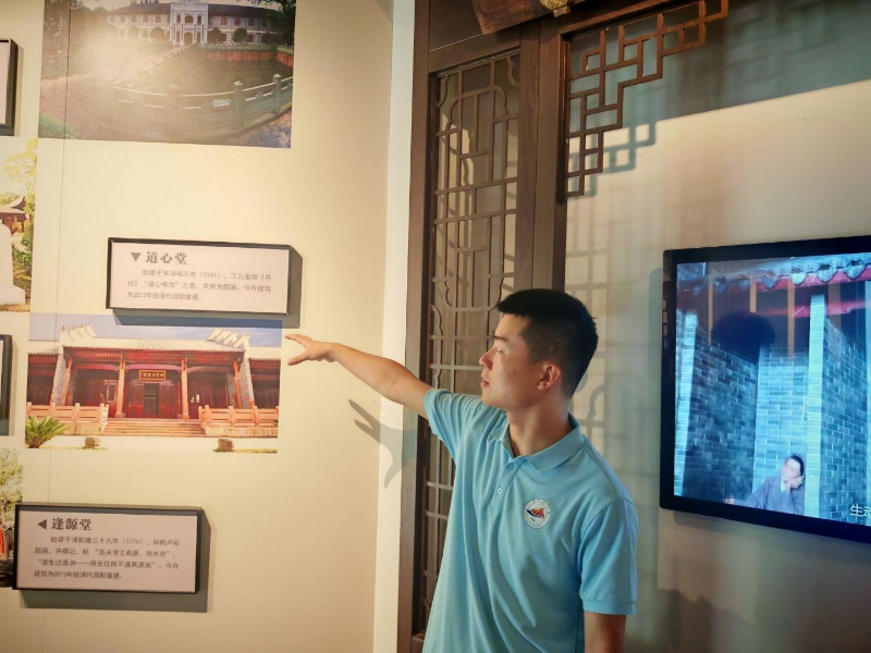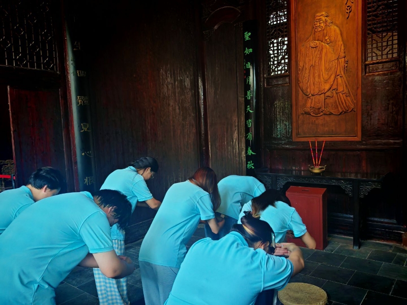 穿过泮池,至善堂的楹联“鹭飞振振兮,不与波上下;洲峙亭亭也,无随流浊清”在微风中轻轻摇曳。堂内陈列着朱熹讲学的复原场景:一张木桌,几卷经书,却能让“存天理,灭人欲”的哲思穿透时空。同学们围站在复原场景前,听讲解员说,朱熹曾在此教导弟子“为学之道,莫先于穷理;穷理之要,必在于读书”。这让学医者深有共鸣:医学的“理”,既要在书本中求索,更要在临床中穷究。就像面对复杂病症,既需研读典籍找思路,也得在病床前反复推敲,才能找到病因的“天理”,这正是“格物致知”在医学中的生动实践。