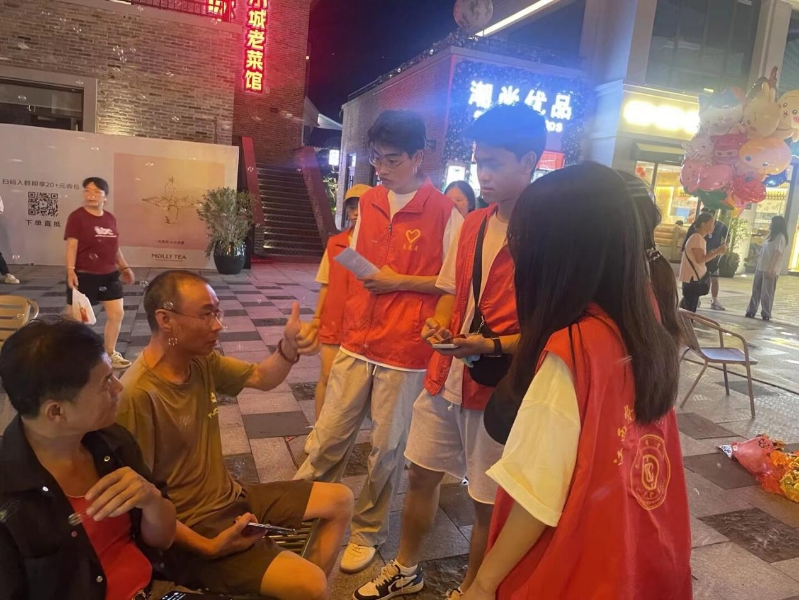 夜幕像一块深蓝色的幕布缓缓拉开,社区广场渐渐热闹起来:广场舞的音乐响起,孩子们在喷泉边追逐,老人们摇着蒲扇坐在石凳上聊天。赣鄱红韵薪火团的志愿者们带着问卷和音响设备,在这里开启了一场“接地气”的夜间服务。调研摊位刚摆好,就有居民主动上前。“你们是上午去长冈纪念馆的学生吧?”一位遛弯的大爷认出了志愿者,“我年轻时也去过,那里的故事讲不完啊!”大爷的话拉近了距离,大家顺势聊起家常。当问到“最需要的社区服务”时,带孙子的张阿姨说:“能不能办个暑期托管班?我们老两口辅导不了作业。”开小卖部的刘叔则建议:“防溺水宣传挺好,但能不能弄点方言版的,老人听得懂。”志愿者们蹲在地上,借着路灯的光认真记录,不知不觉间,问卷上的字迹已晕开了好几处汗渍。