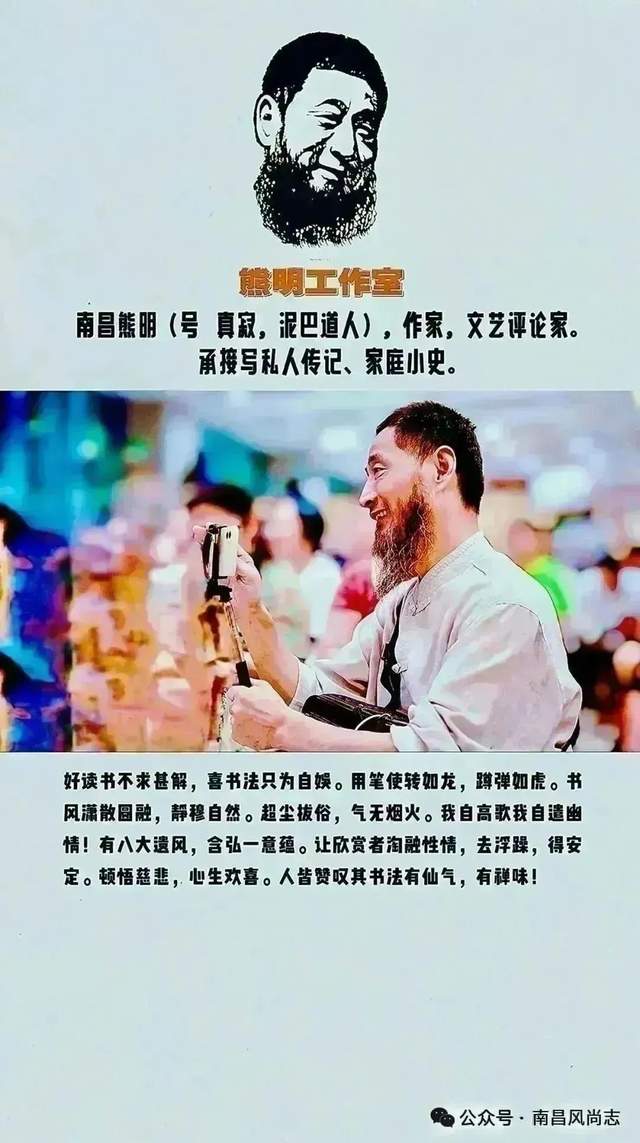 南昌熊明,号泥巴道人、真寂。独立文化观察家。书法研究者。书画有禅味,文章有机锋。一支金笔,风云入怀。各界精英,尽在毫端。用爱心拥抱生活,用书法抚慰人心。从事评论、禅意书法、回忆录、专访等*